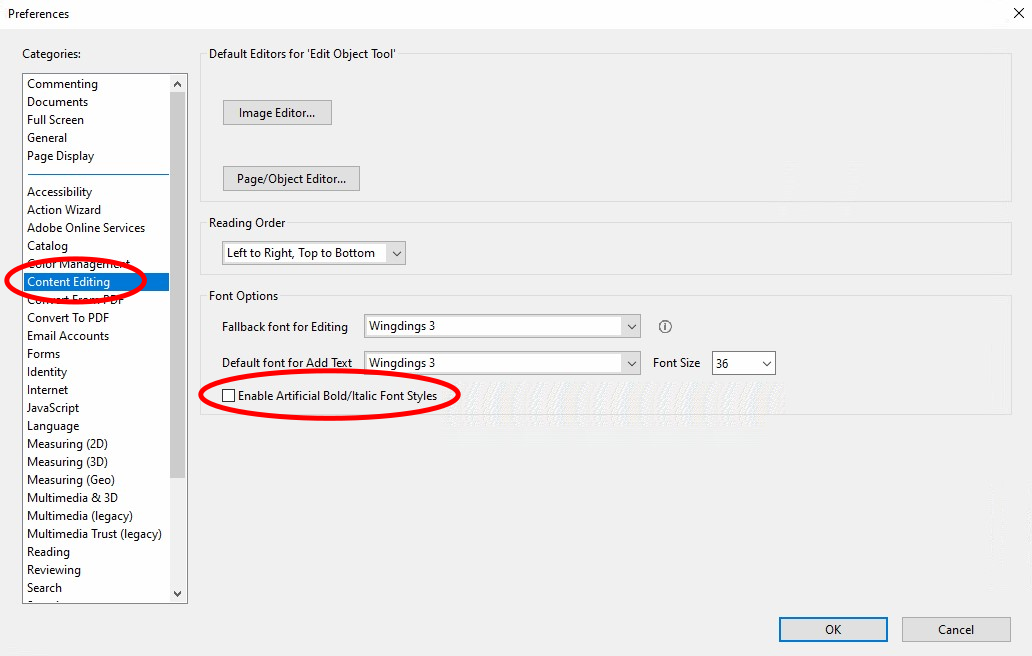 Make sure Adobe Acrobat displays this as they are. (Uncheck “Enable Artificial Bold/Italic Styles”):