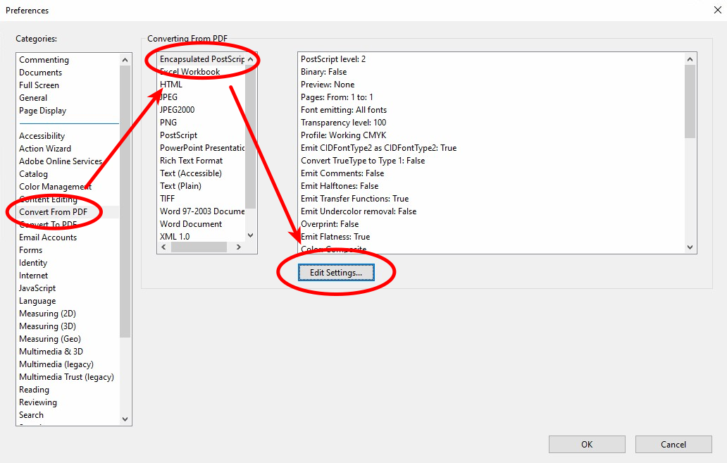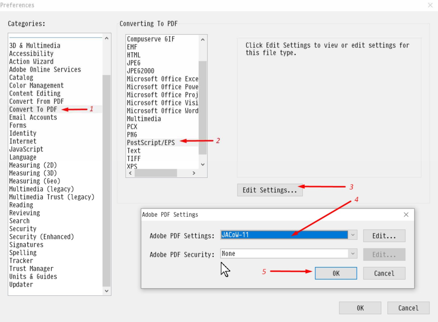 Setup the PostScript/EPS settings to use the JACoW.joboptions Note: Before do this step must be setup the Adobe Acrobat Distiller DC first.
