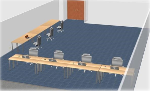 Layouts can be created, for example, with Sweet Home 3D (free interior design application) and laid out to provide plenty of space for editors and ergonomic workspaces.